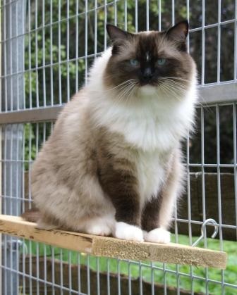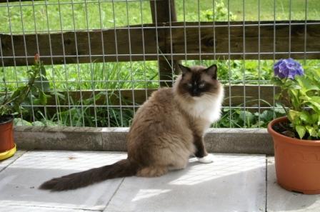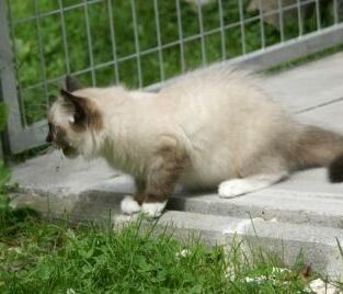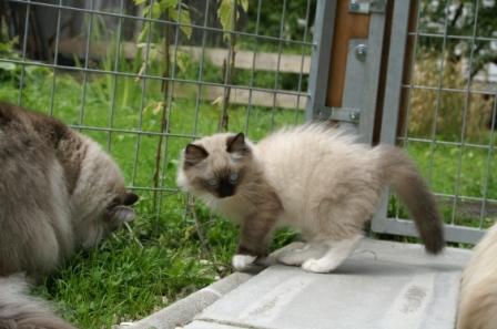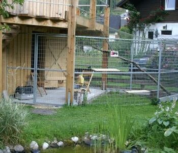 Endlich ist das Freigehege fertig und die Kater durften schon einen Besuch machen. Zuerst waren sie sehr vorsichtig, aber dann siegte doch die Neugier.