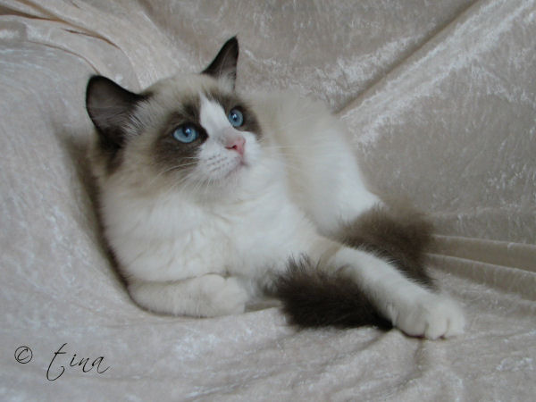 Die Rasse Ragdoll entstand in den 60iger Jahren in Kalifornien, USA. Die Ursprungskatze war laut Mrs. Ann Baker eine weiße Angora-ähnliche Katze nahmens Josephine. Nach einem Autounfall, den Josephine schwer verletzt überlebte, waren ihre Babys im Wesen absolut anhänglich, sanft, sehr groß, schlaff beim Hochnehmen und außerdem schmerzunempfindlich! Dies und noch weitere Geschichten setzte Mrs. Baker in die Welt, um “ihre” Rasse schneller bekannt zu machen.