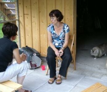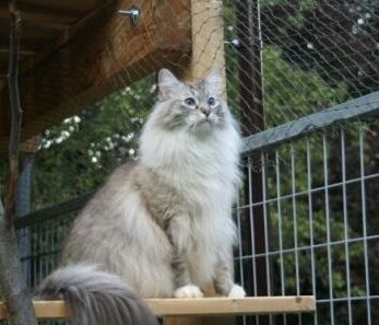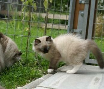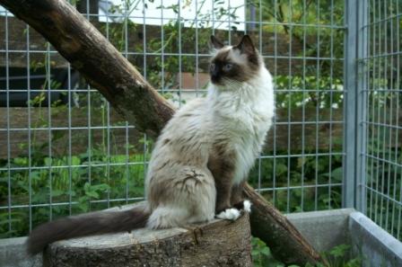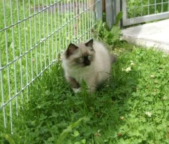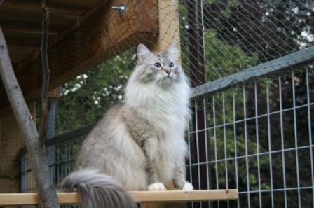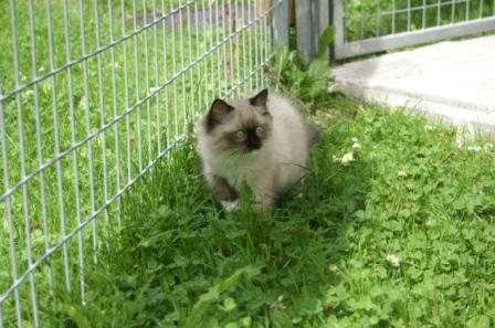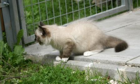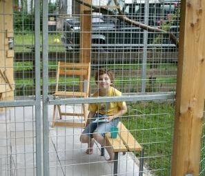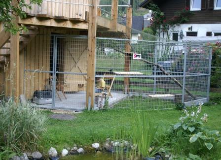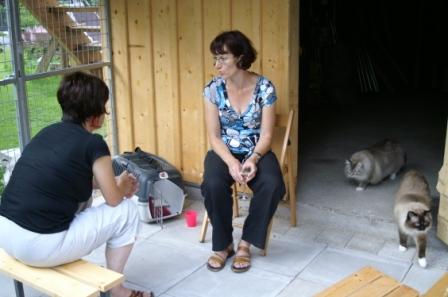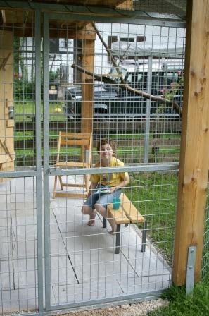 Endlich ist das Freigehege fertig und die Kater durften schon einen Besuch machen. Zuerst waren sie sehr vorsichtig, aber dann siegte doch die Neugier.