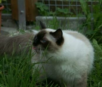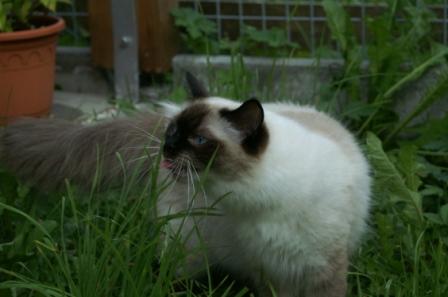 Candy schmeckt das Gras frisch von der Wiese eindeutig besser als das Katzengras im Topf!
